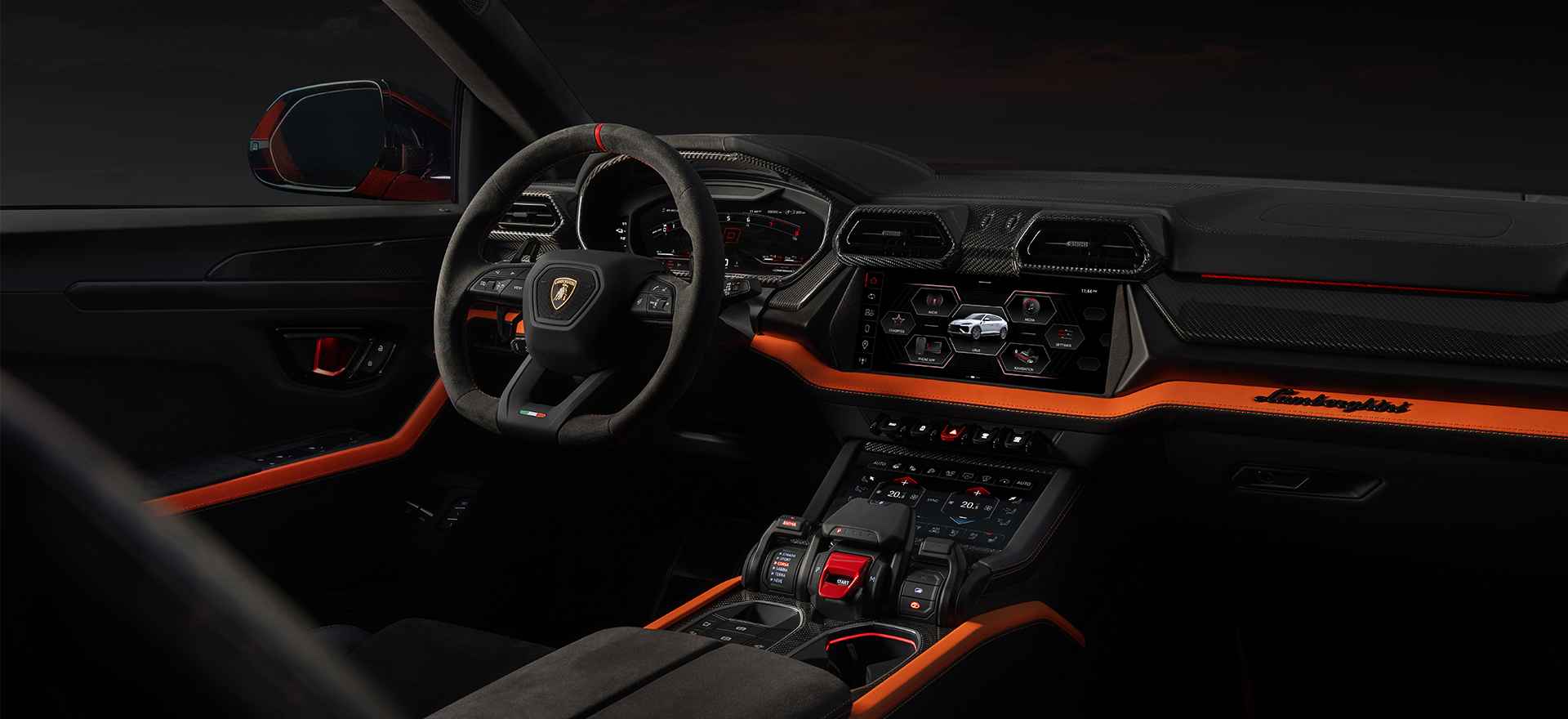 内饰方面,Urus SE依然采用兰博基尼经典的三屏设计,配备嵌入式中控大屏、仪表盘和空调触控面板,造型凌厉夸张,主打机械感和运动气质。此外,新车还配备平底运动方向盘、运动座椅和宽大的换挡机构,营造出浓厚的战斗氛围。