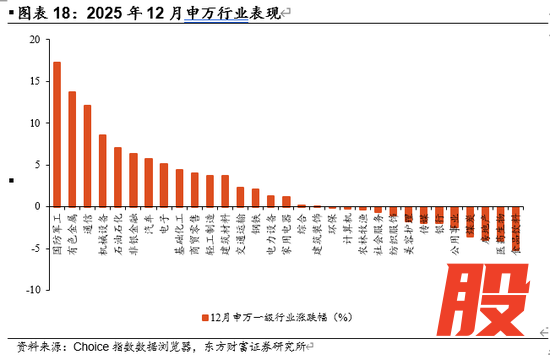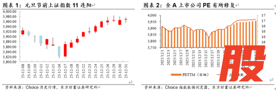 狭义的春季躁动一般指每年一季度基于日历效应和资金配置“开门红”等因素下的上涨,广义的“春季躁动”窗口通常定义为上年12月至次年3或4月,“抢跑”意味着行情的启动时点显著前移至上一年的11月或12月。我们在此前的周报中已指出,在政策取向稳健与流动性宽松的双重加持下,不排除“跨年行情”与“春季躁动”发生合流。我们认为目前的市场表现已充分验证了这一判断:12月以来,A股市场走出震荡区间,呈现出持续且强劲的修复态势,元旦节前上证指数录得11连阳,体现出了一定的趋势性修复。