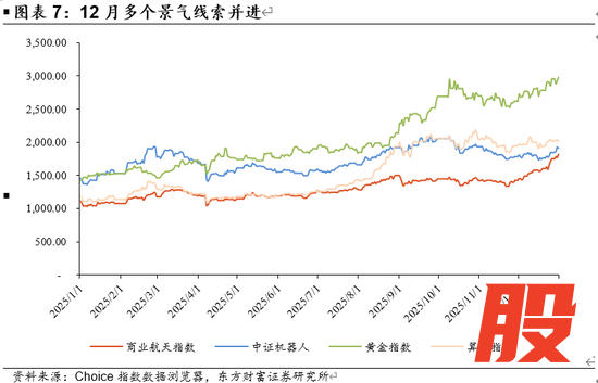 景气线索方面,市场呈现出科技成长与周期修复多线并进的结构,对26年预期总体乐观。尽管市场对2026年科技成长尤其是AI算力一致预期较高,但2025年12月抢跑春季行情并非单一主线的孤立演绎。受益于供需格局改善与价格弹性释放的上游资源涨价链,以及具备短期强事件催化的商业航天、人形机器人等板块,共同构成了市场多维度的领涨结构。此外,从技术面角度观察,自2025年9月3日以来,多个板块经历了充分的盘整消化,上方筹码压力有所缓解,重新具备了较高的配置性价比。